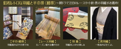 ※草履バックや帯締め帯揚げ、刺繍の半衿など小物も充実、この機会に新たなコーデも提案いたします